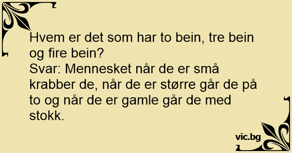 Hvem er det som har to bein, tre bein og fire bein?