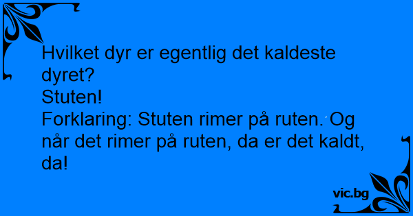 Forklaring: Stuten rimer på ruten. Og når det rimer på ruten, da er det kaldt, da!