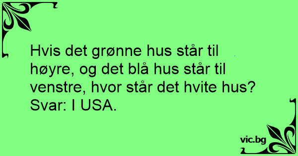 Hvis det grønne hus står til høyre, og det blå hus står til venstre, hvor står det hvite hus?