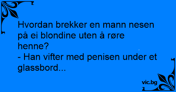 Hvordan brekker en mann nesen på ei blondine uten å røre henne?