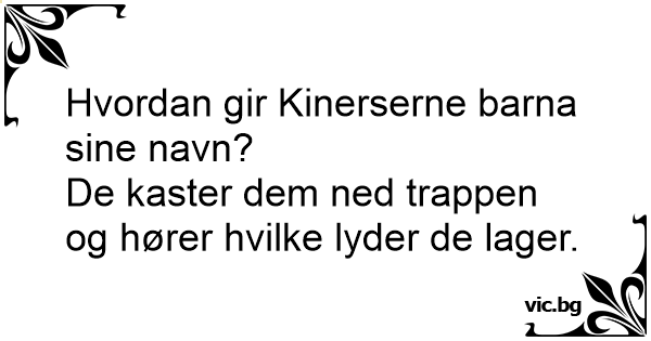 Hvordan giver kineserne deres børn navne? – De kaster en stegepande ned ad trappen.