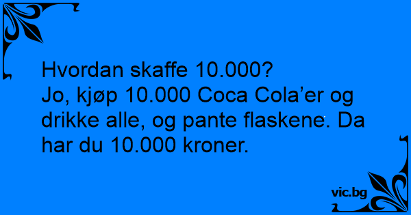 Jo, kjøp 10.000 Coca Cola’er og drikke alle, og pante flaskene. Da har du 10.000 kroner.