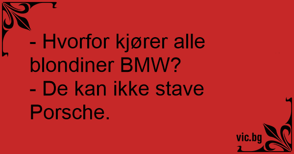 Hvorfor kører blondiner i BMW? - Fordi de ikke kan stave porsche! - Perche’ le bionde guidano BMW ? Perche’ non sanno scrivere PORSCHE!