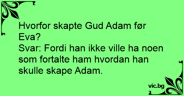 Svar: Fordi han ikke ville ha noen som fortalte ham hvordan han skulle skape Adam.