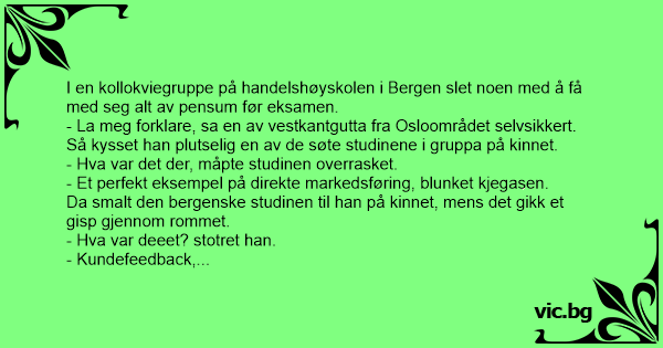 - Hva var det der, måpte studinen overrasket.