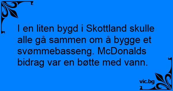 I en liten bygd i Skottland skulle alle gå sammen om å bygge et svømmebasseng. McDonalds bidrag var en bøtte med vann.