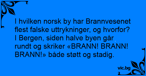 I Bergen, siden halve byen går rundt og skriker «BRANN! BRANN! BRANN!» både støtt og stadig.