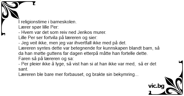 Læreren syntes dette var betegnende for kunnskapen blandt barn, så da han møtte guttens far dagen etterpå måtte han fortelle dette.