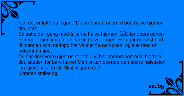 "Ja, det er lett!" sa legen. "Det er bare å operere bort halve hjernen din, det!"