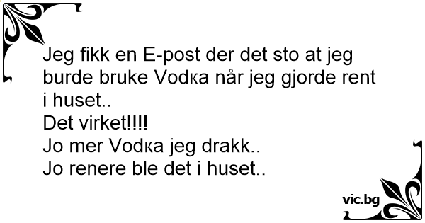 Jeg fikk en E-post der det sto at jeg burde bruke Vоdка når jeg gjorde rent i huset..