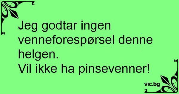 Jeg godtar ingen venneforespørsel denne helgen.
