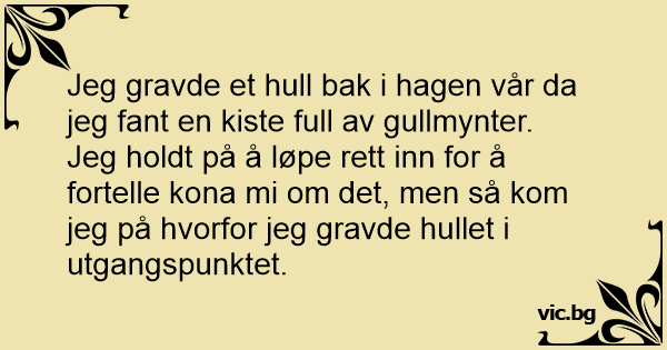 Jeg holdt på å løpe rett inn for å fortelle kona mi om det, men så kom jeg på hvorfor jeg gravde hullet i utgangspunktet.