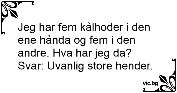 Jeg har fem kålhoder i den ene hånda og fem i den andre. Hva har jeg da?