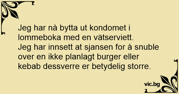 Jeg har nà bytta ut kondomet i lommeboka med en vätserviett.
