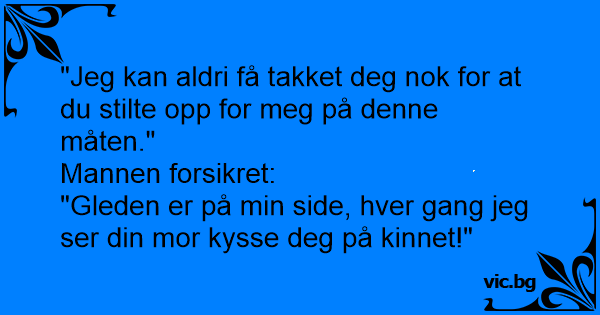 "Gleden er på min side, hver gang jeg ser din mor kysse deg på kinnet!"