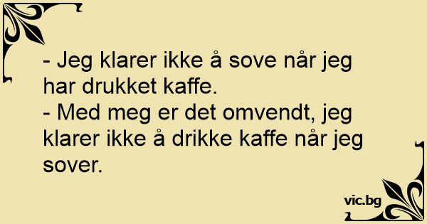 - Med meg er det omvendt, jeg klarer ikke å drikke kaffe når jeg sover.