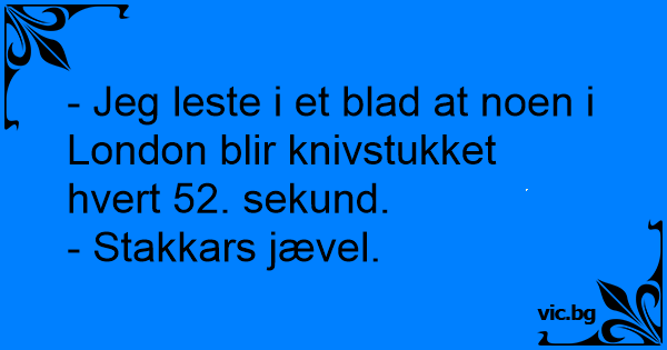 - Jeg leste i et blad at noen i London blir knivstukket hvert 52. sekund.