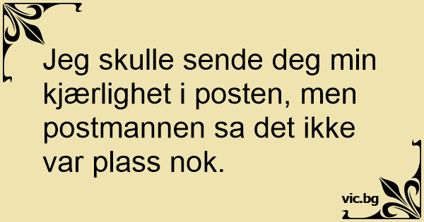 Jeg skulle sende deg min kjærlighet i posten, men postmannen sa det ikke var plass nok.