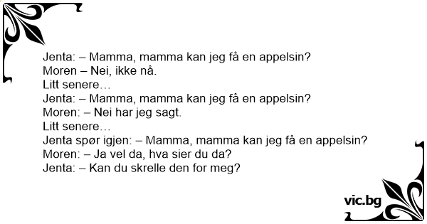 Jenta: – Mamma, mamma kan jeg få en appelsin?