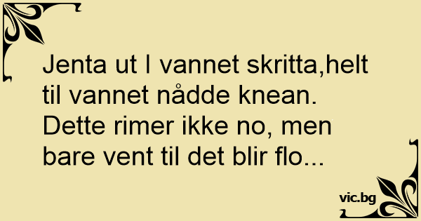 Jenta ut I vannet skritta,helt til vannet nådde knean. Dette rimer ikke no, men bare vent til det blir flo...