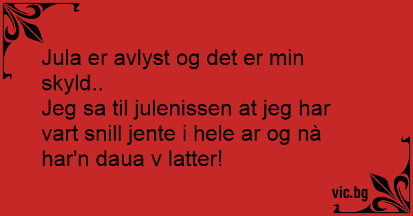 Jeg sa til julenissen at jeg har vart snill jente i hele ar og nà har'n daua v latter!