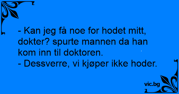 - Kan jeg få noe for hodet mitt, dokter? spurte mannen da han kom inn til doktoren.