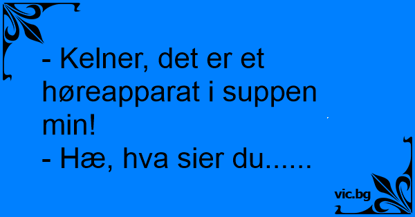 "Tjener, der er et høreapparat i min suppe!" "Hva´?"