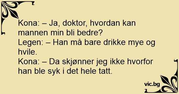 Kona: – Ja, doktor, hvordan kan mannen min bli bedre?