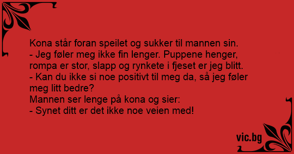 Mannen ser lenge på kona og sier: