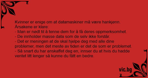 Kvinner er enige om at datamaskiner må være hankjønn. Årsakene er klare: