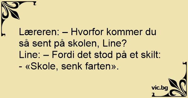 Pani pyta się Jasia: - Jasiu, czemu spóźniłeś się do szkoły? - To przez ten znak. - Jaki znak? - Zwolnij, szkoła!