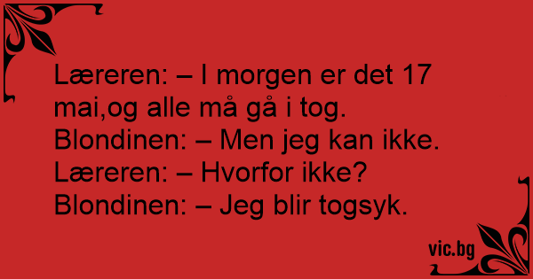 Læreren: – I morgen er det 17 mai,og alle må gå i tog.