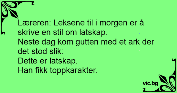 Læreren: Leksene til i morgen er å skrive en stil om latskap.