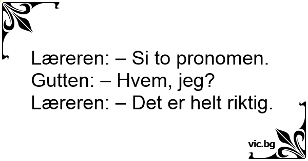Læreren: "Sig mig 2 personlige stedord." Eleven: "Hvem? Mig?" Læreren: Fuldstændig korrekt!"