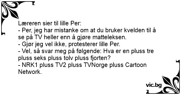 - Per, jeg har mistanke om at du bruker kvelden til å se på TV heller enn å gjøre matteleksen.