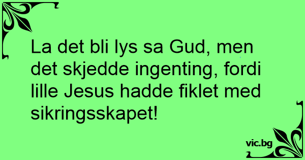 La det bli lys sa Gud, men det skjedde ingenting, fordi lille Jesus hadde fiklet med sikringsskapet!