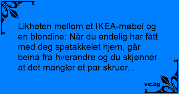 Likheten mellom et IKEA-møbel og en blondine: Når du endelig har fått med deg spetakkelet hjem, går beina fra hverandre og du skjønner at det mangler et par skruer...