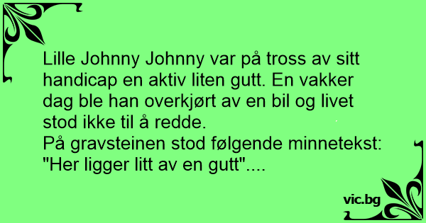 Lille Johnny Johnny var på tross av sitt handicap en aktiv liten gutt. En vakker dag ble han overkjørt av en bil og livet stod ikke til å redde.