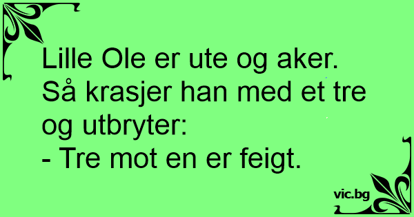 Lille Ole er ute og aker. Så krasjer han med et tre og utbryter: