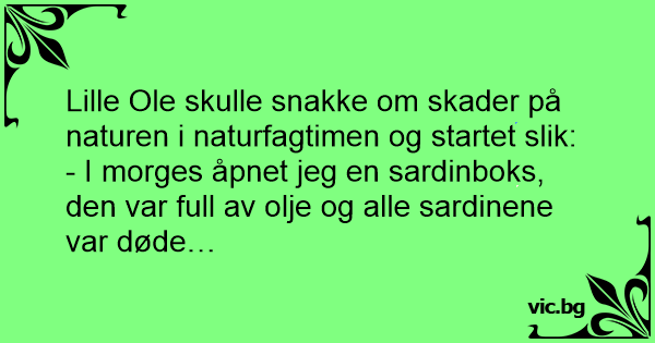 Lille Ole skulle snakke om skader på naturen i naturfagtimen og startet slik: