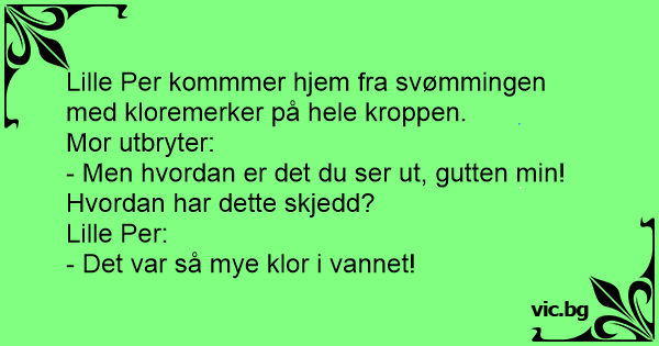 Lille Per kommmer hjem fra svømmingen med kloremerker på hele kroppen.