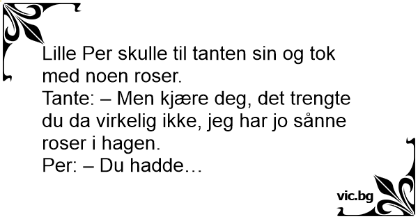 Tante: – Men kjære deg, det trengte du da virkelig ikke, jeg har jo sånne roser i hagen.