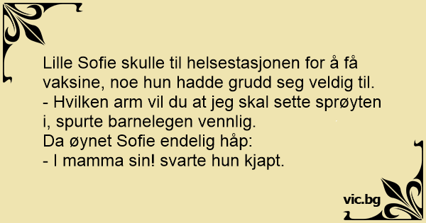 Lille Sofie skulle til helsestasjonen for å få vaksine, noe hun hadde grudd seg veldig til.
