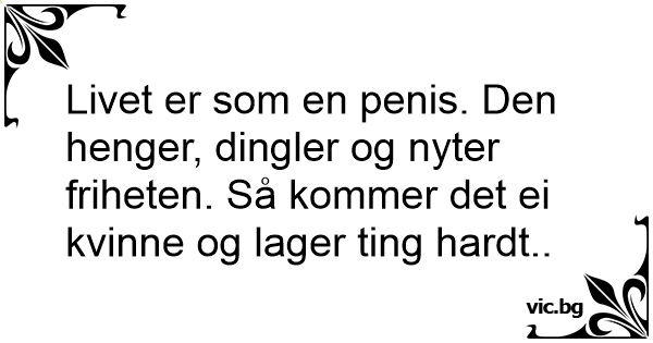 Livet er som en реnis. Den henger, dingler og nyter friheten. Så kommer det ei kvinne og lager ting hardt..