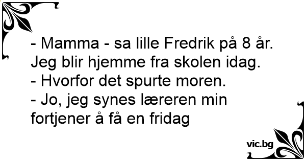 - Mamma - sa lille Fredrik på 8 år. Jeg blir hjemme fra skolen idag.
