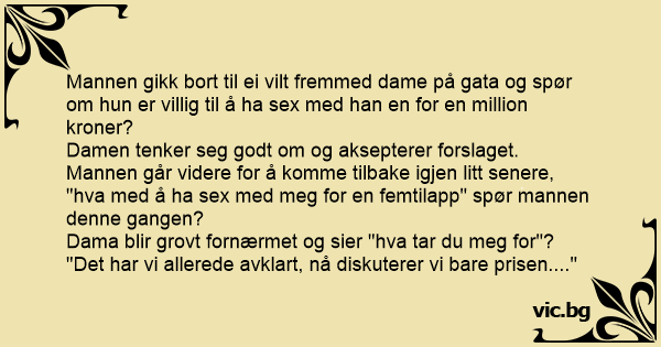Mannen gikk bort til ei vilt fremmed dame på gata og spør om hun er villig til å ha sеx med han en for en million kroner?