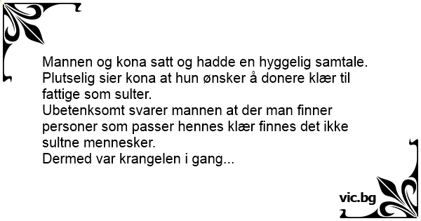 Plutselig sier kona at hun ønsker å donere klær til fattige som sulter.