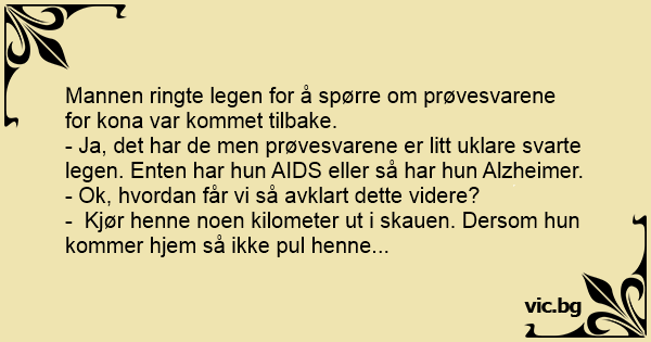 - Ja, det har de men prøvesvarene er litt uklare svarte legen. Enten har hun AIDS eller så har hun Alzheimer.
