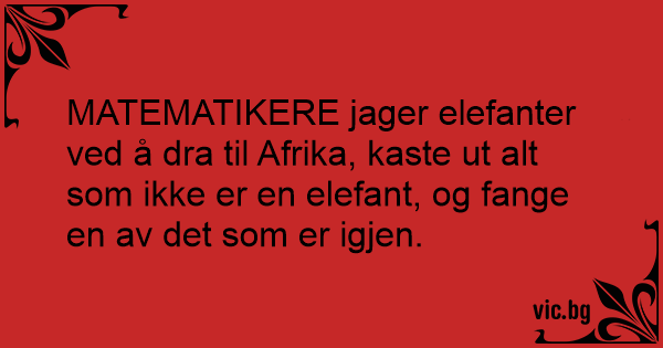MATEMATIKERE jager elefanter ved å dra til Afrika, kaste ut alt som ikke er en elefant, og fange en av det som er igjen.