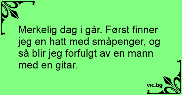 Merkelig dag i går. Først finner jeg en hatt med småpenger, og så blir jeg forfulgt av en mann med en gitar.